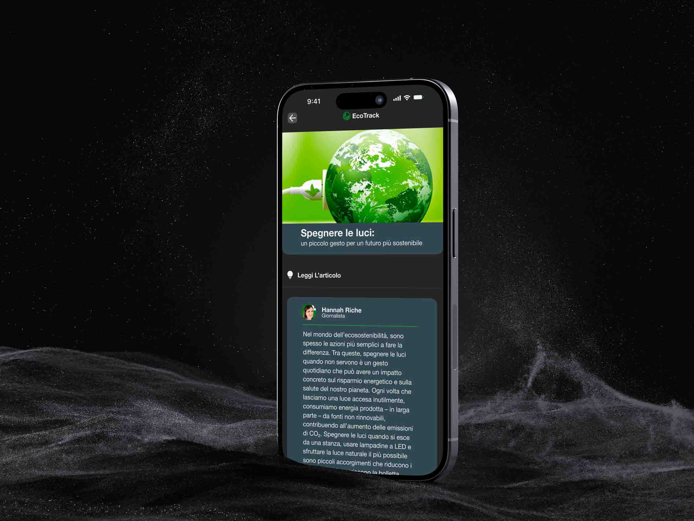 Il progetto prevede la creazione di un’app tracker dedicata all’eco-sostenibilità , con l’obiettivo di sensibilizzare e guidare gli utenti verso uno stile di vita più consapevole e rispettoso dell’ambiente. L’app dovrà permettere di monitorare le proprie abitudini quotidiane (consumi energetici, mobilità , alimentazione, riciclo, ecc.) e fornire statistiche, consigli personalizzati e obiettivi per migliorare il proprio impatto ecologico.